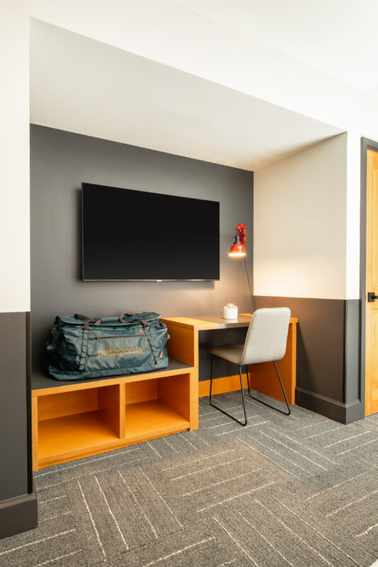 Not your traditional basecamp. Our modern rooms offer cozy bed(s), a full bath, air conditioning, coffee maker, mini-fridge, microwave, thoughtful amenities, and ample storage for your gear.